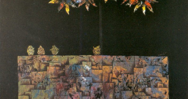 جان-جاعى تىك ءتورتبۇرىشتى ءپىشىن قۇراپ قالانعان تاس دۋالدىڭ ىشىنە ەگىلگەن مۇنداعى اعاش جاساندى وركەنيەتتىڭ نەمەسە تاريحي تامىرىنان, وزەگىنەن, جەرمەن تىكەلەي بايلانىسىن بىلدىرەتىن نەگىزىنەن اجىراعان بۇگىنگى مادنيەتتىڭ, ۇرپاقتىڭ سيمۆولى ىسپەتتەس. اعاش جاپىراقتارى دا جاساندى گۇلدىڭ جاپىراقتارى ءتارىزدى بىردەي كولەمدە جەتىلىپ, جارقىراپ تۇر. ونىڭ ءمىنسىز تىك بىتكەن ءدىڭى تۇنگى اسپاننىڭ ورتاسىنا ءسىڭىپ اسا بىلىنبەي بەينەلەنسە دە ءوزىنىڭ مىنسىزدىگىمەن اربايدى...