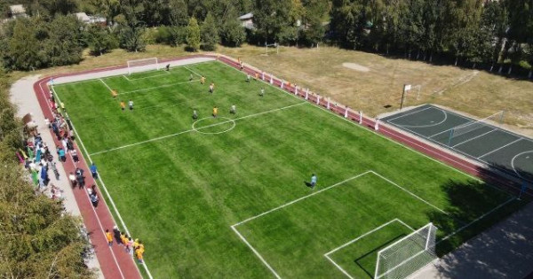 بۇعان دەيىن وقۋشىلار توزىعى جەتكەن كونە الاڭدا جاتتىعىپ كەلگەن ەدى. قازىر ىسكە قوسىلعان جاڭا سپورت الاڭىنىڭ جالپى كولەمى 1 800 شارشى مەتر, وندا جاساندى گازون جابىندىسى توسەلگەن فۋتبول الاڭى, ارنايى جۇگىرۋگە ارنالعان رەزەڭكە جولاقتى جول, باسكەتبول جانە ۆولەيبول الاڭدارى بار. ستاديون قۇرىلىسىن «Millennium Story Group» جشس قۇرىلىسشىلارى جۇرگىزگەن. قۇرىلىس جۇمىستارى بيىلعى ماۋسىم ايىندا باستالعان بولاتىن.