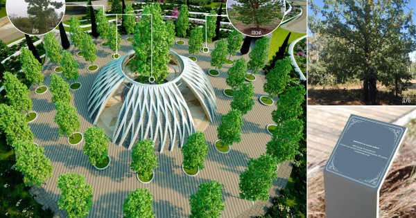 قالا اكىمدىگىنە قاراستى ۋربانيستيكا ورتالىعىنىڭ حابارلاۋىنشا, جوبانىڭ نەگىزگى يدەياسى – ء«ومىر اعاشى» مونۋمەنتى. بۇل قۇرىلىس كۇمبەز تۇرىندە جاسالادى. ونىڭ ورتاسىنا جاپىراقتى اعاش – ەمەن اعاشىن ورنالاستىرۋ جوسپارلانعان. اعاش سپيرالمەن جانە ۇيلەسىمدى سۋبۇرقاقپەن – سۋ بەتىمەن قورشالادى.