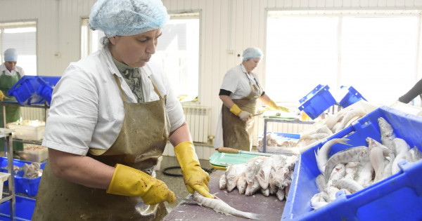 «100 كيلو بالىقتان 50 كيلو فيلە شىعادى. ءبىزدىڭ كاسىپورىن قالدىقسىز جۇمىس ىستەيدى. بالىقتىڭ قالدىعىنان, سۇيەگىنەن, شەمىرشەگى مەن قابىرشىعىنان ۇن شىعارامىز, ونى مال مەن قۇسقا, بالىقتىڭ وزىنە ازىق رەتىندە پايدالانادى, جاقسى تىڭايتقىش تا بولادى. بۇل تۇنىپ تۇرعان تازا پروتەين. نەگىزىنەن قۇس فابريكالارى ساتىپ الۋدا. ءبىزدىڭ بىرنەشە تسەحىمىز بار. بالىق الدىمەن جۋىلادى, سودان سوڭ ىرىكتەلەدى, تازارتىلادى, كەسىلىپ, ەتى جايمالانادى, دايىندالىپ, قاپتالىپ, ماركاسى جاپسىرىلادى. ءبىر عانا بولشەكتەپ وڭدەۋ تسەحىندا ەكى اۋىسىممەن, ياعني ايىنا ەكى اپتادان 25 ادامعا دەيىن جۇمىس ىستەيدى. كاسىپورىندا 82 ادام تۇراقتى ەڭبەك ەتەدى», دەيدى جاس مامان دينارا ورازبەكوۆا. ونىڭ بۇل زاۋىتتا ەڭبەك ەتىپ جۇرگەنىنە بەس جىل بولعان.