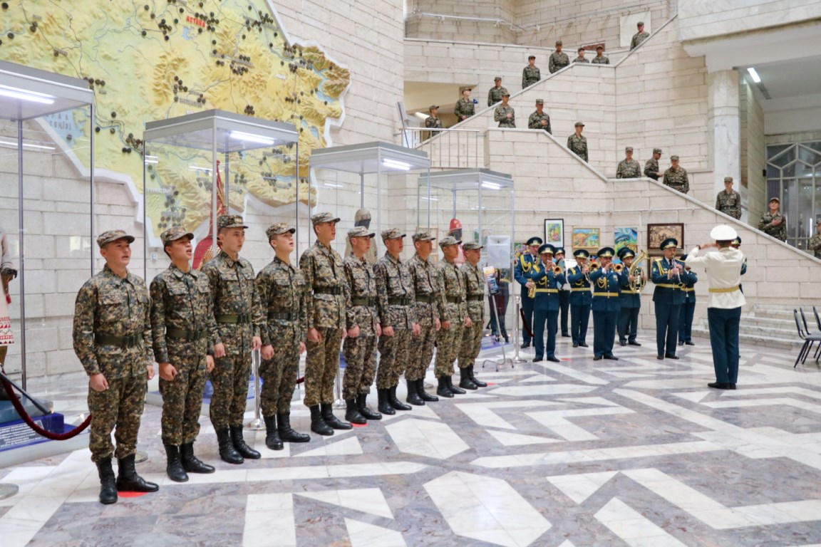 مەرەكەلىك ءىس-شارانى قازاقستان رەسپۋبليكاسى ىشكى اسكەرلەرى 804-پولكىنىڭ ءبىرىنشى كومانديرى, پولكوۆنيك سويۋزجول جۇمانوۆ جانە قازاقستان رەسپۋبليكاسى مەملەكەتتىك ورتالىق مۋزەيىنىڭ ديرەكتورى راشيدا ەرىمقىزى اشىپ, جاس ساربازداردى رەسپۋبليكا كۇنىمەن قۇتتىقتاپ, وتان قورعاۋدىڭ, اتا-بابا ەرلىگىنىڭ جىلناماسى تاريحي جادىگەرلەر كومبەسى بولىپ وتىرعان مۋزەيلەردە جازۋلى ەكەنىن اتاپ ءوتتى.