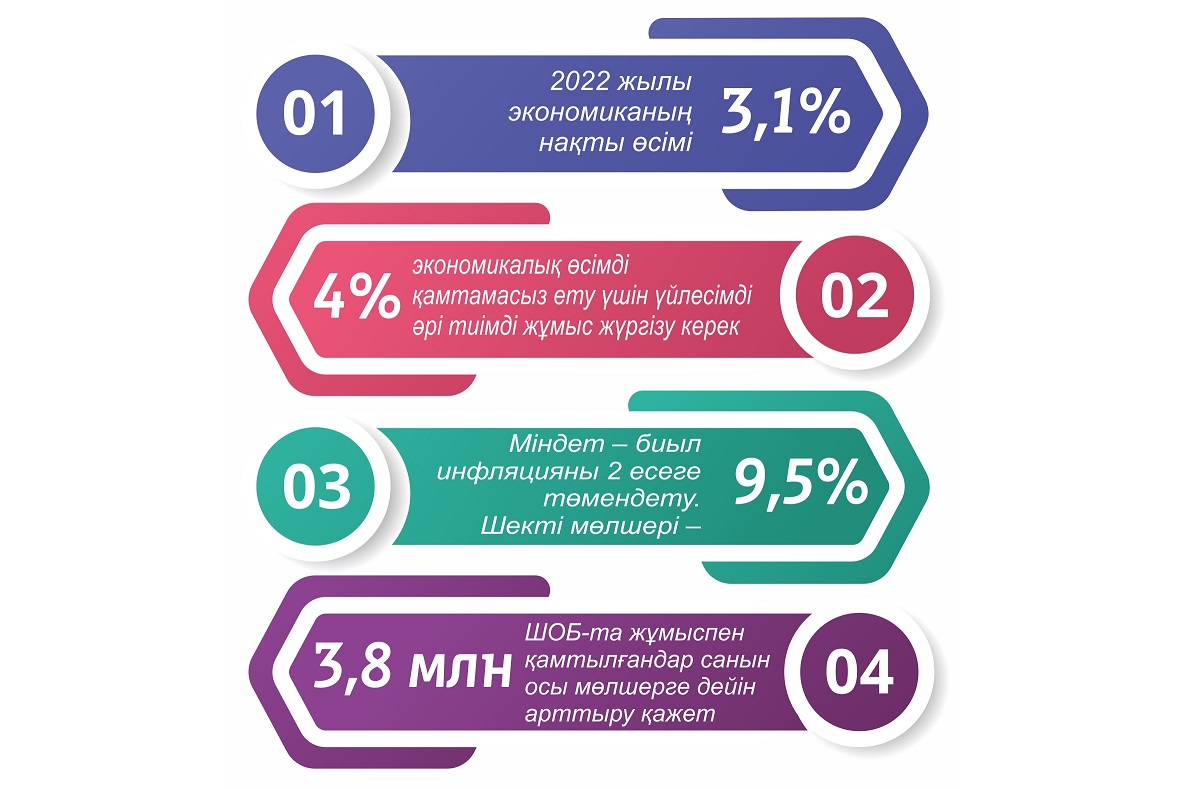 ء«بىزدىڭ مىندەتىمىز – بيىل ينفلياتسيانى 2 ەسەگە تومەندەتۋ. ول 9,5% شەگىندە بولۋى كەرەك. بۇل – وتە كۇردەلى مىندەت. سوندىقتان كەز كەلگەن پروبلەمانىڭ الدىن الۋ شارالارىنا باسا ءمان بەرىپ, جۇمىلا ارەكەت ەتۋىمىز قاجەت», دەدى پرەمەر-مينيستر.