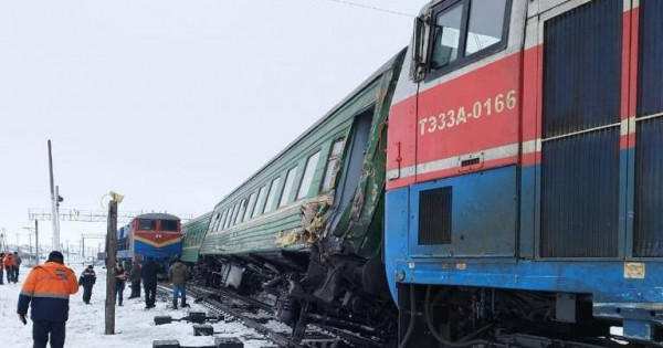 «الدىن الا مالىمەت بويىنشا, 5 ناۋرىزدا ساعات 10:30-دا اقتوبە وبلىسى, شالقار اۋدانى, بەرشۇگىر تەمىرجول ستانتسياسىندا مانەۆرلىك لوكوموتيۆپەن بۇيىرلىك سوقتىعىسۋ سالدارىنان «بىشكەك-سامارا» قاتىناسىمەن جۇرەتىن №317 جولاۋشىلار پويىزىنىڭ تەپلوۆوزى, №1 ۆاگونى جانە №2 جولاۋشىلار پويىزىنىڭ ءۇش دوڭعالاقتى جۇبى رەلستەن شىعىپ كەتتى», دەپ حابارلادى قتج ءباسپاسوز قىزمەتى.