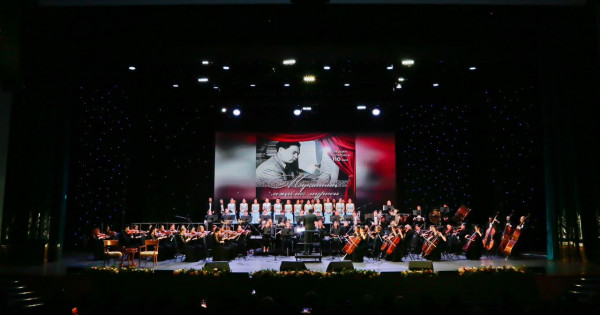 ە.راحماديەۆ اتىنداعى مەملەكەتتىك اكادەميالىق فيلارمونياسى سيمفونيالىق وركەسترىنىڭ كونتسەرتىندە «قازاقستان» سيمفونيالىق پوەماسى, «مەنىڭ قازاقستانىم», «باقىت ءۆالسى», «توس مەنى توس», «كەستەلى ورامال», «تولعاۋ», «مەرەكە بي», «توي» سيمفونيالىق كارتيناسى, ء«بىرجان سال» وپەراسىنان سارانىڭ ارياسى جانە باسقا دا تۋىندىلارى ورىندالادى. كەش سوليستەرى – حالىقارالىق بايقاۋلاردىڭ لاۋرەاتتارى شاحريزادا تىنىشتىق, قۋانىش ءبىلال, ساۋلەجان تاعزيا, المات ىزبامبەتوۆ, ايگەرىم امانجولوۆا, التىنبەك ارىستانبەك, تالعات اللابيرينوۆ, ازامات جىلتىرگوزوۆ. كەشتىڭ ديريجەرى سيمفونيالىق وركەستردىڭ كوركەمدىك جەتەكشىسى ءادىل بەستەمبەكوۆ بولدى.