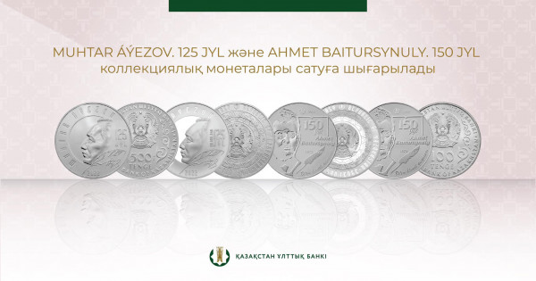 قازاقستان ۇلتتىق بانكى 14 ناۋرىزدان باستاپ مۇحتار اۋەزوۆتىڭ 125 جىلدىعىنا جانە احمەت بايتۇرسىن ۇلىنىڭ 150 جىلدىعىنا وراي شىعارىلعان كوللەكتسيالىق مونەتالاردى ساتىلىمعا شىعاردى.