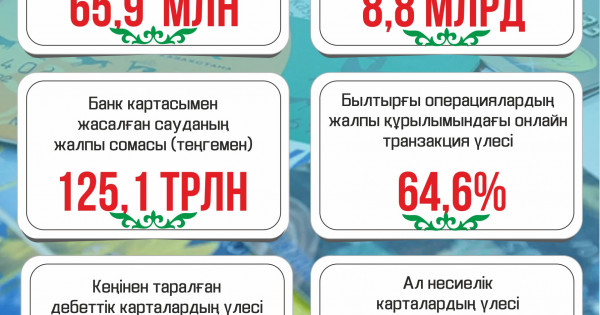 قازىرگى كۇنى تولەم كارتاسىن قولدانۋشىلار اراسىندا قولما-قول اقشاسىز وپەراتسيالاردىڭ ەڭ تانىمال ءتاسىلى – ءموبيلدى بانكينگتى پايدالانۋ. بىلتىر وپەراتسيالاردىڭ جالپى قۇرىلىمىنداعى ونلاين ترانزاكتسيا ۇلەسى 64,6%-دى قۇرادى. كۇن سايىن ءاربىر ازامات تسيفرلى بانكينگ ارقىلى ورتا ەسەپپەن 234,7 ملرد تەڭگەدەن اسا سوماعا 15,2 ميلليونعا جۋىق ترانزاكتسيا جۇرگىزەدى ەكەن. سونىمەن قاتار التى ءجۇز مىڭعا تارتا كاسىپكەردىڭ 92,5 پايىزى QR كود ارقىلى تولەم جۇرگىزگەن.