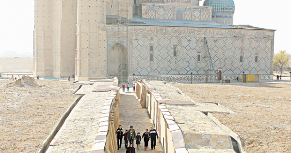 سونىمەن قوجا احمەت ياساۋي كەسەنەسىن سالعان ۇستالار عيماراتتىڭ كوزگە تۇسەتىن ولشەمدەردى قۇران كارىمنىڭ سۇرەلەرى مەن گەومەتريالىق فيگۋرالارعا نەگىزدەلىپ سالعانى انىقتالدى. عيماراتتىڭ حالقىمىزدىڭ كيىز ءۇي سياقتى وڭتۇستىك-شىعىسقا قاراتىپ سالۋ دا كەرەمەت بايلانىس ەكەندىگىن كورسەتەدى. باس قاسبەتتەگى مۇنارالاردىڭ جارتىسى تىك سەگىز جاقتى پريزما بولسا, قالعان ەكىنشى بولىگى تىك دوڭگەلەك تسيليندر. ال ءبۇيىر قابىرعالارىندا سەگىزبۇرىشتار مەن ون ەكى بۇرىشتارى بار. بۇل گەومەتريالىق فيگۋرالاردىڭ ىشىنە قۇران كارىمنەن سۇرەلەر جازىلعان. گەومەتريالىق فيگۋرالدى سالۋدا وتە دالدىكپەن كىرپىشتەردى كولبەۋ جانە تىك ءورۋ ارقاسىندا سالعان.
