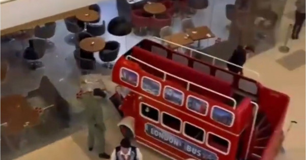 ساۋدا ورتالىعىنداعى بالالار اۆتوبۋسى كوفەحانانىڭ اينەكتى قابىرعاسىنا سوقتىعىسىپ, ونى سىندىرعان. MEGA ساۋدا ورتالىعىنىڭ ىشىندە ورنالاسقان مەكەمەنىڭ ورىندىقتارىنا اينەك سىنىقتارى شاشىراعان.