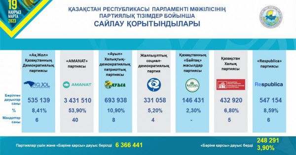 سونىمەن مۇقىم حالىق اسىعا كۇتكەن پارتيالىق ءتىزىم دە جاريالاندى. جالپى, جاڭا شاقىرىمداعى دەپۋتاتتاردىڭ 70 پايىزى جاڭاردى. باسىم داۋىستى «Amanat» يەلەنگەندىكتەن, كىمدەرگە ماندات بۇيىراتىنى ءبىراز قاۋىمدى قىزىقتىرعانى جاسىرىن ەمەس. پارتيا ءتىزىمى جارتىلاي جاڭاردى دەپ ايتۋعا تولىق نەگىز بار.