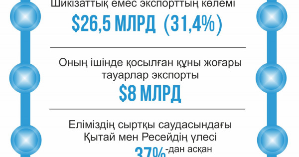 بىلتىر ەلدىڭ شيكىزاتتىق ەمەس ەكسپورتىنىڭ كولەمى ارتىپ, 2012 جىلعى تاريحي ماكسيمۋمنان اسىپ, 26,5 ملرد اقش دوللارىنا (31,4%) جەتكەن. ونىڭ 8 ملرد اقش دوللارىن قوسىلعان قۇنى جوعارى تاۋارلار ەكسپورتى قۇرادى.
