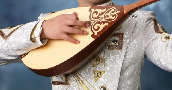 رەسەيلىك دومبىراشىلار بۇل كۇيدى قۇرمانعازى كەسەنەسىنىڭ الدىندا تارتتى. دومبىراشىلاردىڭ اراسىندا ەرەسەكتەر دە, بالالار دا بار.