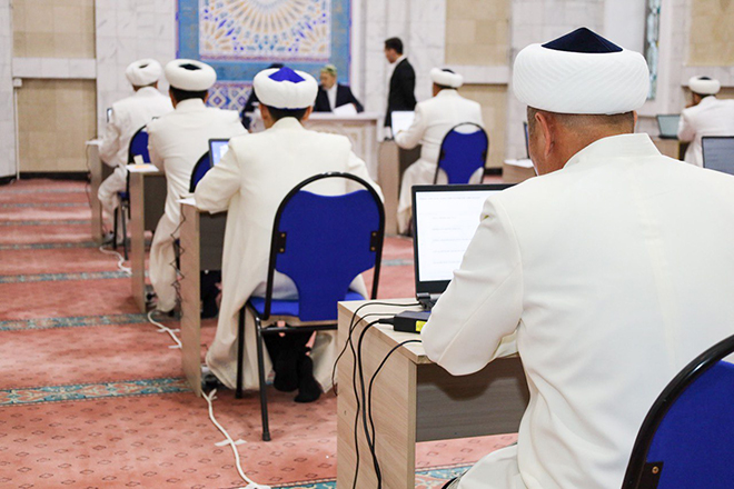 «سىناق بارىسىندا ءدىن قىزمەتكەرلەرىنە قىراعات, ءتاجۋيد, اقيدا, فيقھ, يسلام تاريحى سالالارى بويىنشا سۇراقتار توپتاستىرىلعان بيلەتتەر ۇسىنىلدى. ءدىن قىزمەتكەرلەرىنىڭ ءبىلىمىن ساراپتاپ, بىلىكتىلىگىن باعالاۋ ءۇشىن قمدب قىزمەتكەرلەرىنەن قۇرالعان كوميسسيا مۇشەلەرى قوسىمشا تاپسىرمالار بەرىپ, مەشىت ەرەجەسى, كونتسەپتۋالدى قۇجاتتار, باسقا دا اكىمشىلىك ساۋالدار ارقىلى بىلىكتىلىك دەڭگەيىن انىقتايدى», دەپ حابارلادى الماتى ورتالىق مەشىتى.