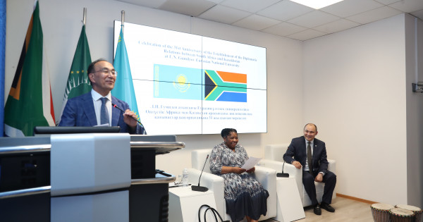 «بۇگىنگى ءىس-شاراعا ەرەكشە كوڭىل ءبولىپ, ۇلكەن ءمان بەرگەندەرىڭىزگە اسا قۋانىشتىمىز. ەكى ەلدىڭ ديپلوماتيالىق قارىم-قاتىناستارىنىڭ كەلەسى 30 جىلدىعى ءبىزدىڭ ىنتىماقتاستىعىمىزدىڭ التىن كەزەڭى بولاتىنىنا سەنىمدىمىز. وڭتۇستىك افريكانىڭ ۇلى كوشباسشىسى, العاشقى دەموكراتيالىق پرەزيدەنتى نەلسون ماندەلانىڭ: «ەگەر ءسىز ءبىزدىڭ پلانەتامىزدى وزگەرتكىڭىز كەلسە, ءبىلىم – ەڭ كۇشتى قارۋ» دەگەن ءسوزى بار. سونداي-اق ۇلى فيلوسوف ءال-فارابي: «ەگەر ءسىز ۇلتتىڭ بولاشاعىن كورگىڭىز كەلسە, ونىڭ جاستارىنا قاراڭىز», دەپ ايتقان ەدى. وسى تۋربۋلەنتتىلىك كەزەڭىندە ءبىز باۋىرلاستىق, ماحاببات, مەيىرىمدىلىك قاسيەتتەرىن ساقتاۋىمىز كەرەك. تابىستى ۇرپاعىمىز ءۇشىن جاقسى الەم قۇرايىق», دەدى قانات تۇمىش.