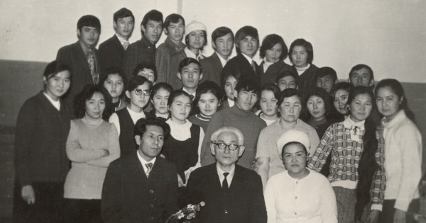 مىنا 1975 جىلى تۇسىرىلگەن سۋرەتتە جۋرناليستيكا جانە فيلولوگيا فاكۋلتەتىنە تۇسۋگە تالاپكەر ءبىر توپ تىڭداۋشى بەينەلەنگەن. ارامىزدا ەكى-ءۇش زاڭ فاكۋلتەتىنەن كەلگەندەر دە بار. ورتادا وتىرعاندار الما قىراۋباەۆا (وڭنان سولعا قاراي), قايىرجان بەكحوجين جانە جۋرفاكتىڭ وقىتۋشىسى قويانبەك احمەتوۆ.
