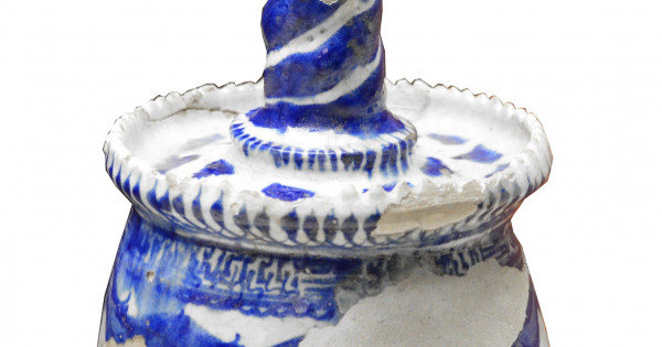 بۇل بۇيىم وتىراردىڭ قىش شەبەرحاناسىندا جاسالعان. قاي عاسىرعا ءتان ەكەنى بەلگىسىز. بىراق ونىڭ سىرتقى بەينەسىنەن كونە جادىگەر ەكەنىن بايقايسىز. شىراعداننىڭ سىرتى اق ءتۇستى انگوبپەن كومكەرىلىپ, كوك ءتۇستى بوياۋمەن ورنەكتەلگەن. تۇعىردىڭ تومەنگى جانە جوعارعى بولىگىندە كولدەنەڭىنەن ەكى قاتار قىتاي يەروگليفىنە ۇقساس ورنەكتەر, ورتاڭعى بولىگىندە ەكى ايداھار بەينەلەنگەن. تۇعىرى تراپەتسيا ءپىشىندى, قيماسى دوڭگەلەك, تابانىنىڭ ىشكى جاعى قۋىس, ەرنەۋى ىشكە, سىرتقا قاراي دوعالدانا قايىرىلعان, جيەگى تولقىن ءتارىزدى. استىڭعى بولىگىنىڭ ديامەترى – 19 سم, بيىكتىگى – 27 سم. تۇعىردىڭ ۇستىڭگى ورتالىق الاڭىندا شىراق ورنالاسقان.