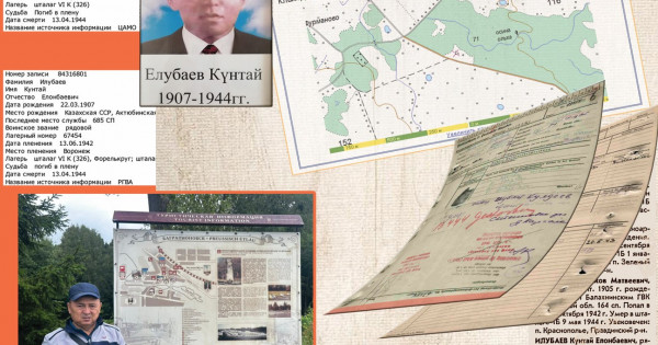 جاقىندا رەداكتسيامىزعا اسقار كۇنتاەۆ ەسىمدى ازامات كەلدى. جانىندا جۇبايى جايناگۇل بار. اسقار اعا قولىنداعى بىرنەشە پاراق قاعازىن بىزگە ۇستاتىپ, اسىقپاي اڭگىمەسىن باستادى. ء«بىر اپتا بۇرىن عانا ەلگە كەلدىك. ۇلكەن اكەمنىڭ اماناتىن ورىنداپ كەلىپ وتىرعان بەتىمىز وسى. ءوزىمىز اقتوبە وبلىسىنىڭ حرومتاۋ اۋدانىنىڭ تۋماسىمىز. اتامىز كۇنتاي ەلۋباەۆ 1907 جىلى دۇنيەگە كەلگەن. 1942 جىلى سوعىسقا شاقىرىلادى. اتاقتى 685-اتقىشتار پولكىندە قاتارداعى جاۋىنگەر بولعان. الايدا سول جىلى پولك ۆورونەج ماڭىنداعى مايدان كەزىندە تۇتقىنعا تۇسەدى. ەكى جىل تۇتقىندا بولعان اتامىز 1944 جىلى 13 ساۋىردە لازارەتتە قايتىس بولعان», دەدى.