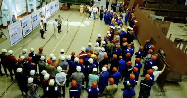 بەس جۇزگە جۋىق ادام جۇمىس جاسايتىن زاۋىت بۇگىندە كاسپي تەڭىزىندەگى شەكارا قىزمەتىندە جۇرگەن كەمەلەردى قۇراستىرادى.