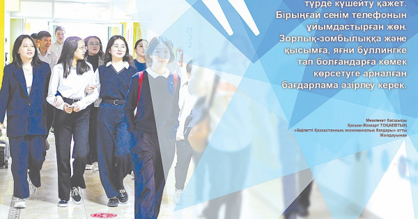كەيىنگى ۋاقىتتا بالالار اراسىنداعى زورلىق-زومبىلىق پروبلەماسى قوعامدى الاڭداتىپ جۇرگەنىن بىلەسىزدەر. ءبىز ءوز تاراپىمىزدان بۋللينگ جاعدايىن بولدىرماۋ ءۇشىن فين تاجىريبەسىن زەرتتەپ جاتىرمىز. ول ەلدە «كيۆي» دەگەن باعدارلاما قابىلدانعان. كەيىنگى ون جىلدىڭ ىشىندە اتالعان باعدارلامانىڭ ارقاسىندا فينليانديادا بۋللينگ بىرنەشە ەسە تومەندەگەن. ءبىز بۇل تاجىريبەنى ءوزىمىزدىڭ ءبىلىم سالاسىندا قولدانۋ جاعىن پىسىقتاپ, زەردەلەپ جاتىرمىز.