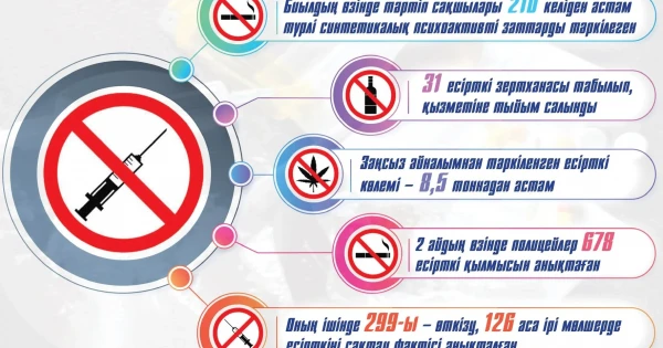 بيىلدىڭ وزىندە ءتارتىپ ساقشىلارى 210 كيلودان استام ءتۇرلى سينتەتيكالىق پسيحواكتيۆتى زاتتاردى تاركىلەگەن. 31 ەسىرتكى زەرتحاناسى تابىلىپ, قىزمەتىنە تىيىم سالىندى. قازىر ەسىرتكىنىڭ تۇرلەرىمەن قوسا, ونى ساتۋ مەن تاسىمالداۋدىڭ دا نەشە ءتۇرلى جولدارى پايدا بولىپ جاتىر. ناشاقورلاردىڭ سۇيىكتى «ەرمەگىنە» جەتۋ ءۇشىن ويلاپ تاۋىپ جاتقان فانتازيالارىندا شەك جوق.