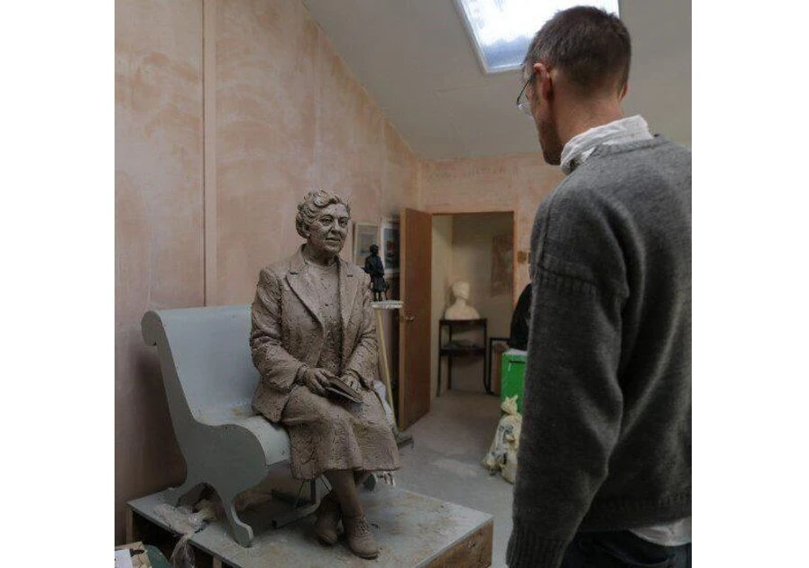 قولادان قۇيىلعان مۇسىندە قولىنا كىتاپ ۇستاپ ورىندىقتا وتىرعان اگاتا كريستيدىڭ ساياباققا قاراپ تۇرعان بەينەسى سومدالعان. بۇل ساياباققا قاراما-قارسى كريستيگە ارنالعان مۇراجاي ورنالاسقان.