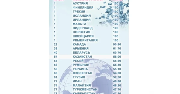 ءتىزىمنىڭ ۇزدىكتەرىنە 100 ۇپاي العان 10 مەملەكەت ەنگەن. زەرتتەۋ دەرەگىنەن كورىپ وتىرعانىمىزداي, يندەكستىڭ العاشقى وندىعىندا اۋستريا, فينليانديا, گرەتسيا, يسلانديا, يرلانديا, مالتا سىندى ەۋروپا مەن جەرورتا تەڭىزى مەملەكەتتەرى ورنالاسقان. يندەكستە ارمەنيا – 39, بەلارۋس 40-ورىنعا جايعاسسا, قازاقستان الەمدىك كورسەتكىشتە 54-ورىنعا تۇراقتاعان. اتاپ وتەتىن جايت قازاقستان 2020 جىلعى رەيتينگتە دە 55,8 ۇپايمەن 54-ورىندى يەلەنگەن ەدى.