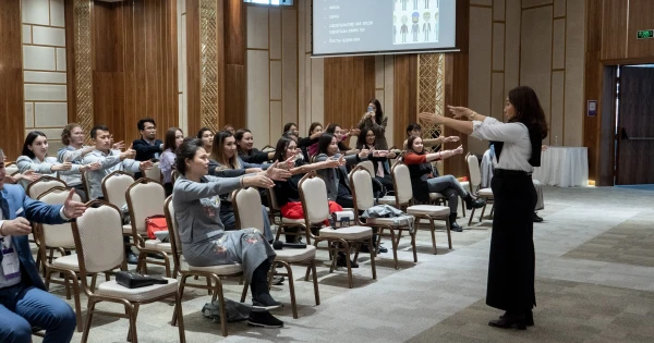 ال شەشەندىك ونەر سالاسىنىڭ ساراپشىسى مەرۋەرت جۇنىسبەك «شەشەندىك ونەر. سويلەۋ تەحنيكاسى» ۋوركشوبىندا قاتىسۋشىلارمەن بىرگە پراكتيكالىق تاپسىرمالار ورىندادى. سپيكەر كوپشىلىك الدىندا سەنىمدى سويلەپ, اۋديتوريانىڭ نازارىن قالاي اۋدارۋ كەرەگىن ايتتى.