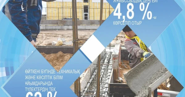 ۇلتتىق ستاتيستيكا بيۋروسىنىڭ مالىمەتى بويىنشا ناق قازىر ەلىمىزدە جۇمىسسىزدىق دەڭگەيى 4,8 پايىزدى كورسەتىپ وتىر. ەڭبەك نارىعىندا جۇمىسشىلارعا ءالى دە بولسا سۇرانىس جوعارى. ويتكەنى بۇگىندە تەحنيكالىق جانە كاسىپتىك ءبىلىم ۇيىمدارىندا تۇلەكتەردىڭ تەك 62%-ى جۇمىسقا ورنالاسادى ەكەن. بۇل ەڭبەك نارىعىندا جۇمىسشىعا ءتاۋىر جالاقى, ساپالى جۇمىس ۇسىنۋ قاجەت ەكەنىن ۇقتىرادى. تاعى ءبىر جايت, جۇمىسشىلاردى بىلىكتىلىكتى ارتتىرۋ باعدارلامالارىنا تارتۋ جاعى دا اقساپ تۇر.