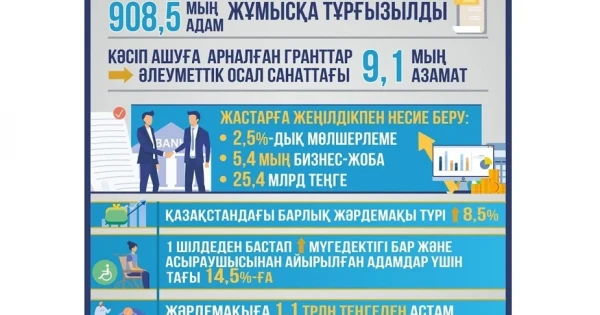 - حالىقتىڭ الەۋمەتتىك وسال توپتارىنان شىققان ازاماتتارعا بيزنەس اشۋ ءۇشىن 400 اەك (شامامەن 1,3 ملن تەڭگە) كولەمىندە 9,1 مىڭ مەملەكەتتىك گرانت بەرىلدى. وسىنىڭ ناتيجەسىندە جاڭا تىگىن شەبەرحانالارى, ناۋبايحانالار, سۇلۋلىق سالوندارى, ءسۇت ءوندىرۋ جانە باسقا دا كاسىپورىندار جۇمىس ىستەي باستادى.