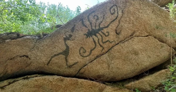 ودان كەيىنگى قاناتتى ادامدار, گەومەتريالىق كەسكىندەر, الىپ قوڭىز بەن سۋ استىنداعى جاندىك تارىزدەس, بايتەرەك ۇستىندەگى جولبارىس (نەمەسە سىلەۋسىن), كوز تاڭبالارى جانە وزگە دە تۇسىنىكسىز بەينەلەردىڭ بارلىعى ءار جەردە شاشىراي ورنالاسقان. ادام تۇگىلى, مال اياعى باسا قويمايتىن تىلسىم جەردىڭ قۇپياسى ءبىزدى راسىمەن تاڭعالدىردى.
