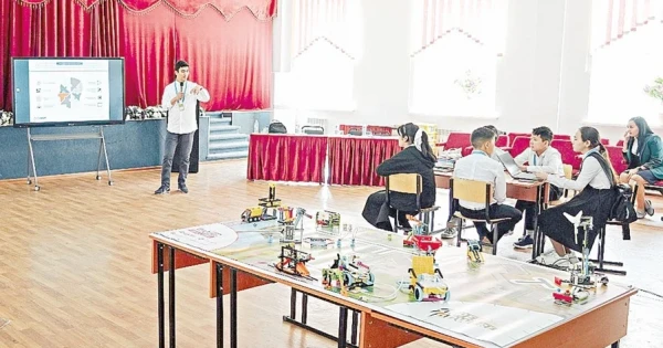 وقۋشىلار ينفورماتيكا كابينەتىنە مۇعالىمنىڭ ءدارىسىن عانا ەمەس, روبوت قۇراستىرۋ ءۇشىن دە كەلەدى. ءپان مۇعالىمى ءمادينا ساعىنعالي وقۋشىنىڭ بارىنە كومەكتەسۋگە ۋاقىت تابادى. ول بۇرىن روبوتتەحنيكاعا بايلانىستى كۋرستار مەن ترەنينگتەردە بىلىكتىلىگىن جەتىلدىرگەن.