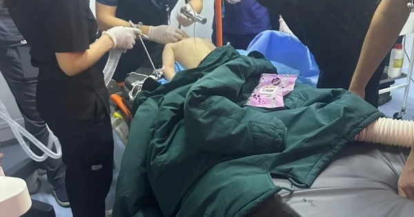 بالا بىردەن وسى اۋرۋحانانىڭ جانساقتاۋ بولىمىنە جاتقىزىلىپ, رەانيماتولوگتەر گەيمليح ايلاسىن قولدانىپ, ىشتەگى بوتەن زاتتى الىپ تاستاۋعا بىرنەشە رەت ارەكەتتەنگەنىمەن, وكىنىشكە قاراي, ناتيجە بولماعان. قجشكا ديرەكتورىنىڭ ورىنباسارى ەرمەك جەلدىباەۆتىڭ ايتۋىنشا, ۇجىم كىشكەنتاي ناۋقاستىڭ ءومىرىن ساقتاۋدا تىعىرىققا تىرەلگەن. ەرەسەكتەر اۋرۋحاناسىندا بالالارعا ارنالعان برونحوسكوپتىڭ بولماۋىنا بايلانىستى وعان برونحوسكوپيا جاساۋ مۇمكىن ەمەس ەدى. الايدا بالانىڭ جاعدايى ناشارلاپ, ساتۋراتسياسى تومەندەپ, كوگەرە باستاعان سوڭ رەانيماتولوگتەر نۇرلان رساليەۆ, مامىرجان يۋلداشەۆ جانە حيرۋرگ باقتيار گاليەۆ شۇعىل تۇردە ينتۋباتسيا جاسادى. ينتۋباتسيا كەزىندە بالانىڭ تىنىس جولدارى اشىلىپ, وسىدان كەيىن عانا بالالار اۋرۋحاناسىنان دارىگەرلەر جەتكەنشە ونىڭ جاعدايىن تۇراقتاندىرۋعا مۇمكىندىك تۋدى.