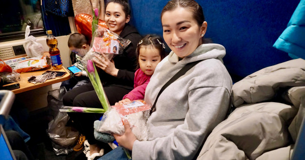 ايەلدەر قاۋىمىنا ساكسوفوننان كوڭىلدى اۋەن ارنالىپ, پويىزدىڭ ىشىندە داۋىس ۇلعايتقىشتان تىلەكتەر جولداندى.
