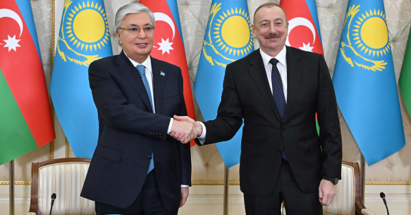 ء«بىز بۇگىن بۇكىل الەمدە رەسۋرستاردان بولەك, كولىك-لوگيستيكا سالاسىنداعى مۇمكىندىكتەرگە قول جەتكىزۋ ءۇشىن باسەكەلەستىك كۇشەيىپ كەلە جاتقانى تۋرالى ايتتىق. بۇل – ستراتەگيالىق سالا. قازاقستان دا, ازەربايجان دا سەنىمدى سەرىكتەستىكتەر رەتىندە بۇل باعىتتا تىعىز قارىم-قاتىناس جاساپ جاتقانى قۋانتادى. سيان پورتىنان قازاقستان اۋماعى ارقىلى ازىربايجانعا دەيىنگى تەمىرجول باعدارىن اشۋدىڭ ءوزى كوپ نارسەنى اڭعارتادى. بۇل, شىن مانىندە, وتە ماڭىزدى شارا. ءبىز تسيفرلاندىرۋ, جاساندى ينتەللەكت جۇيەسىن قۇرۋ, كاسپي تەڭىزىنىڭ تابانى ارقىلى وپتيكالىق-تالشىقتى بايلانىس جەلىسىن تارتۋ باعىتتارىندا كۇش-جىگەر بىرىكتىرۋ تۋرالى پىكىرلەستىك. مۇنىڭ ءبارى – بىرەگەي جوبالار», دەدى پرەزيدەنت.