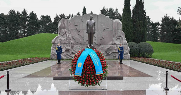 پرەزيدەنت قاسىم-جومارت توقاەۆ ازەربايجاننىڭ جالپىۇلتتىق كوشباسشىسى گەيدار اليەۆتىڭ رۋحىنا تاعزىم ەتىپ, ونىڭ جانە زايىبى زاريفا اليەۆانىڭ بەيىتتەرىنە گۇل شوقتارىن قويدى.
