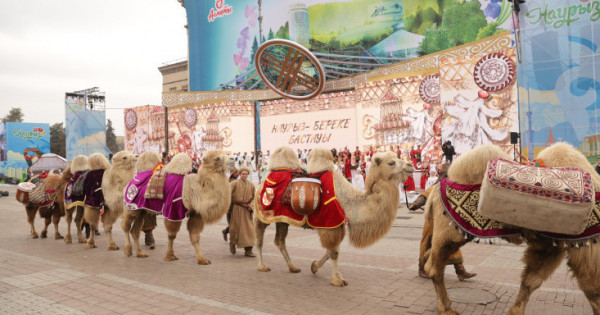 «كوش. ناۋرىز – دۋمان» كونتسەرتىنە مىڭنان استام ۇلتتىق كيىم كيگەن ادام قاتىستى. قالا تۇرعىندارى مەن قوناقتارىنا دوڭگەلەكتى كيىز ۇيلەر, قالىڭدىقتىڭ كۇيى, جىبەك تيەلگەن تۇيەلەر, توقىما, كىلەمدەر, سونداي-اق قازاق حالقىنىڭ جەتى قازىناسىنىڭ نىشانى «جەتى قازىنا» كورسەتىلدى. كەرۋەن نەگىزگى كونتسەرتتىك باعدارلامانىڭ پرولوگىنا اينالدى.