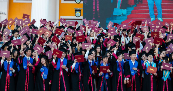 «بۇگىن ءاربىرىڭىزدىڭ جاھاندى جاقسارتۋعا اتسالىسا الاتىندىعىڭىزعا كەپىل بولاتىن ديپلومدارىڭىزدى قولدارىڭىزعا الاسىزدار. الەم تۇرعىندارىنىڭ سانى 8 ميلليارد بولسا, سىزدەر سولاردىڭ ىشىندەگى – 694 جۇيرىگىسىزدەر. سەبەبى سىزدەر – MNU تۇلەكتەرىسىزدەر. ءبىز بارشاڭىزعا سەنىم ارتىپ وتىرمىز, ال جەتىستىكتەرىڭىز جاقىندارىڭىزعا, ءبىزدىڭ ۋنيۆەرسيتەتكە ماقتانىش بولاتىنى انىق. ومىرلىك جانە كاسىبي جولدا دانالىق پەن ابىروي بيىگىنە كوتەرىلىڭىزدەر», دەدى سەرگەي پەن.