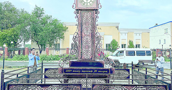 Ұлттық оюлармен әрі шамдармен безендірілген, күндіз де, түнде де көз тартатын әдемі сағатты оралдық шебер әрі кәсіпкер, «Daryn» шеберханасының иесі Жарас Сүндетов жасаған екен.