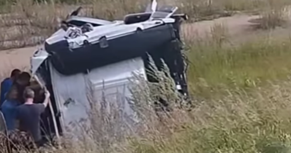 اپات ورنىنان تۇسىرىلگەن كادرلاردا جۇك كولىگىنىڭ قاتتى زاقىمدانعانى بايقالادى. اۋىر سوققىدان جۇك كولىگىنىڭ كابيناسى ج ۇلىنىپ كەتكەن.