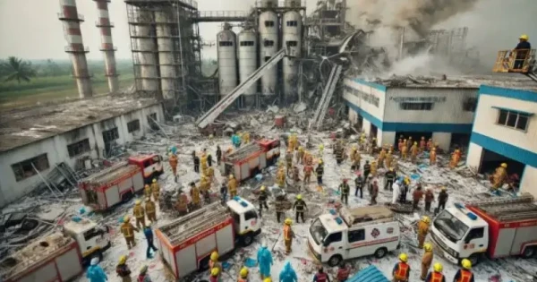 وقيعا 21 تامىز كۇنى Escientia Advanced Sciences زاۋىتىندا بولعان. جەرگىلىكتى بيلىكتىڭ مالىمەتىنشە, جارىلىس سالدارىنان 17 ادام قازا تاۋىپ, تاعى 40 ادام ءتۇرلى دارەجەدەگى دەنە جاراقاتتارىن العان.
