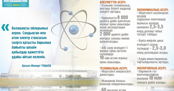 بولاشاقتا اتوم ەنەرگەتيكاسىن دامىتۋدىڭ بىرنەشە ەلەۋلى ارتىقشىلىعى بار ەكەنىن دە ەسكەرۋ قاجەت. اەس ەلدى ەنەرگيامەن قامتاماسىز ەتۋ كوزدەرىن ارتاراپتاندىرۋعا, كومىر مەن گازعا تاۋەلدىلىكتى ازايتۋعا ىقپال ەتەدى. سونداي-اق اتموسفەراعا پارنيكتىك گاز شىعارىندىلارىن ازايتاتىن ەكولوگيالىق تازا ەنەرگيا كوزىنە جاتادى. اتوم ەنەرگياسى ەنەرگيامەن قامتاماسىز ەتۋدىڭ تۇراقتىلىعىنا دا جاۋاپ بەرەدى. ويتكەنى اەس ۇزدىكسىز جۇمىس ىستەيدى ءارى اۋا رايى جاعدايىنا تاۋەلدى ەمەس. زاماناۋي تەحنولوگيالاردى ەنگىزۋ اەس-ءتىڭ جوعارى تيىمدىلىگى مەن قاۋىپسىزدىگىن قامتاماسىز ەتۋگە مۇمكىندىك بەرەدى. اتوم ەنەرگەتيكاسى ەلىمىزدىڭ تەحنولوگيالىق دامۋىنا جانە جاڭا جۇمىس ورىندارىنىڭ اشىلۋىنا ىقپال ەتەدى. سونىمەن قاتار اەس-ءتىڭ جۇمىس ىستەۋى ولار ورنالاسقان ايماقتاردىڭ ەكونوميكالىق وسۋىنە تىكەلەي بايلانىستى. زاماناۋي اەس ەنەرگيا تيىمدىلىگىن ارتتىرىپ, سمارت-جەلىلىك جۇيەلەرگە بىرىكتىرىلۋى دە مۇمكىن. اتوم ەنەرگەتيكاسى يمپورتتىق ەنەرگيا رەسۋرستارىنا تاۋەلدىلىكتى ازايتىپ, ەلدىڭ ەنەرگەتيكالىق تاۋەلسىزدىگىن نىعايتادى. اەس ەنەرگەتيكالىق ينفراقۇرىلىمىن دامىتۋدىڭ ۇزاقمەرزىمدى بولاشاعىن قامتاماسىز ەتەدى. ءتىپتى سۋتەگى جانە باسقا دا جوعارى تەحنولوگيالىق ونىمدەردى وندىرۋگە پايدالانۋعا بولادى. وعان قوسا يادرولىق فيزيكا مەن تەحنولوگيا سالاسىنداعى زەرتتەۋلەر مەن يننوۆاتسيالاردىڭ سەرپىلىسىنە جول اشادى.