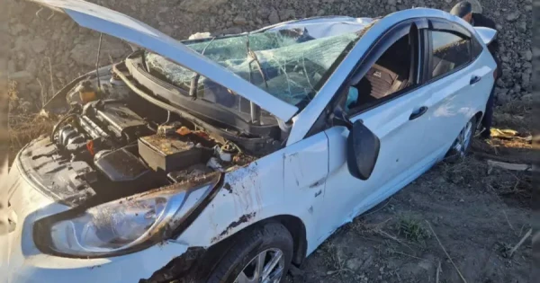 الماتى-وسكەمەن تاسجولىنىڭ 962-شاقىرىمى تۇسىندا, جاڭا وزەن اۋىلى ماڭىندا 80 جاستاعى جۇرگىزۋشى رولگە يە بولا الماي, Hyundai اۆتوكولىگى اۋدارىلىپ قالعان.