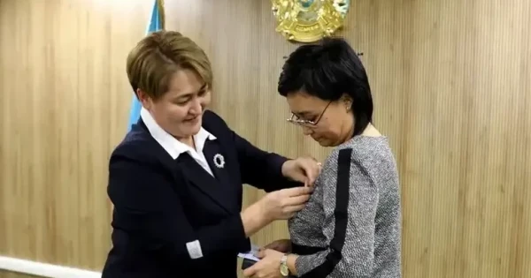 استانا قالالىق سوتىنىڭ قىلمىستىق ىستەر جونىندەگى سوت القاسى توراعاسىنىڭ مىندەتىن اتقارۋشى ايسۇلۋ سلامبەكوۆا سالتاناتتى تۇردە استانا قالاسىنىڭ قىلمىستىق ىستەر جونىندەگى مامانداندىرىلعان اۋدانارالىق سوتىنىڭ توراعاسى ايجان كولباەۆاعا ۆەدومستۆولىق ناگرادانى تابىس ەتتى.