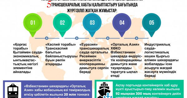 سونىمەن قاتار ماڭعىستاۋ وبلىسىنداعى اقتاۋ جانە قۇرىق پورتتارىندا كونتەينەرلىك حابتار مەن استانا, الماتى, شىمكەنت, اقتوبە قالالارىنداعى اۋەجايلاردا مۋلتيمودالدى اۋە حابتارىن قۇرۋ پىسىقتالىپ جاتىر. جوبالاردى ءساتتى جۇزەگە اسىرۋ ءۇشىن پرەمەر-ءمينيستردىڭ ورىنباسارى سەرىك جۇمانعاريننىڭ جەتەكشىلىگىمەن جەدەل جۇمىس توبى قۇرىلدى. قازىرگى ۋاقىتتا جوبالار جەرگىلىكتى اتقارۋشى ورگانداردىڭ قۇزىرەتىنە بەرىلدى. ءىس جۇزىندە ينۆەستورلارمەن بىرلەسىپ ىسكە اسىرۋ قامتاماسىز ەتىلەدى.