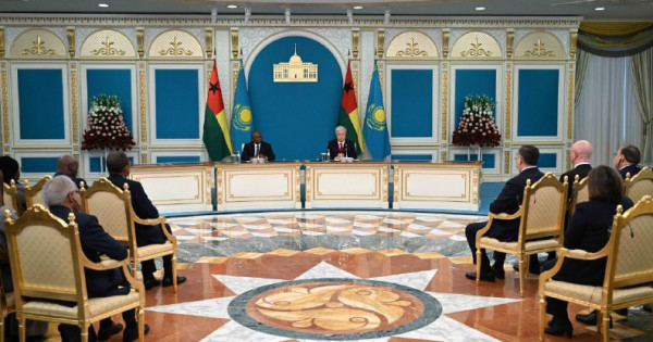 «ەكىجاقتى كەزدەسۋدىڭ ناتيجەسىندە ءتيىمدى ۋاعدالاستىقتارعا قول جەتكىزدىك. بۇل ساپار ساياسي, ساۋدا-ەكونوميكالىق, مادەني-گۋمانيتارلىق جانە باسقا دا سالالارداعى ىنتىماقتاستىقتى ودان ءارى نىعايتۋعا مۇمكىندىك بەرەدى. مىسالى, كولىك-لوگيستيكا سالاسىنىڭ الەۋەتىن تولىق پايدالانۋعا ەكى ەل دە مۇددەلى. وسى رەتتە باتىس افريكاداعى بيساۋ پورتى مەن ترانسكاسپي كولىك ءدالىزىن ۇشتاستىرۋ جولدارىن زەردەلەۋگە كەلىستىك. الەمدەگى گەوساياسي احۋال مەن ازىق-ت ۇلىك قاۋىپسىزدىگى ماسەلەسى ۋشىعىپ تۇرعان قازىرگى كەزدە مۇنىڭ ءمان-ماڭىزى ايرىقشا», دەدى قازاقستان پرەزيدەنتى.