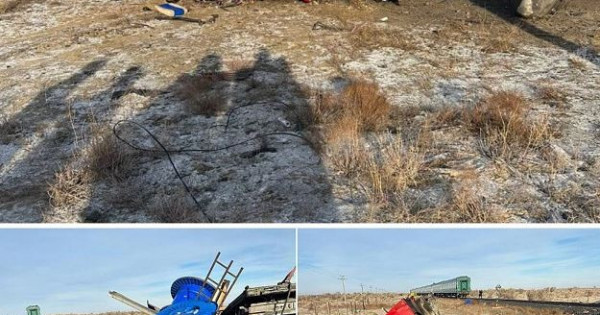 24kz اقپاراتىنشا, «بەينەۋ-قۇلسارى» ۋچاسكەسىنىڭ تەمىرجول وتكەلىندە جۇك كولىگى مەن پويىز سوقتىعىسقان.
