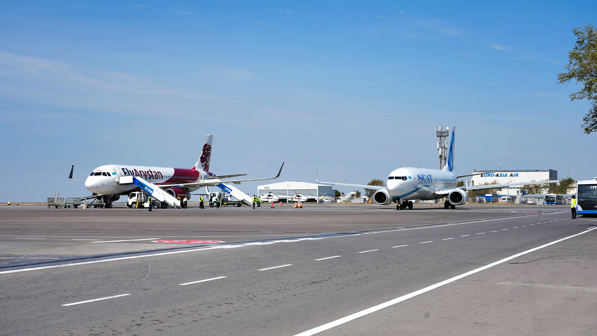وتاندىق اۆياكومپانيالار «Air Astana», «SCAT», «Qazaq Air», «FlyArystan» قازاقستاننىڭ 19 قالاسىنا تۇراقتى ۇشىپ تۇرادى. حالىقارالىق اۋە قاتىناسىن الەمنىڭ 26 ەلىندە 50 باعىتتا 30 شەتەلدىك اۆياكومپانيا ورىندايدى.