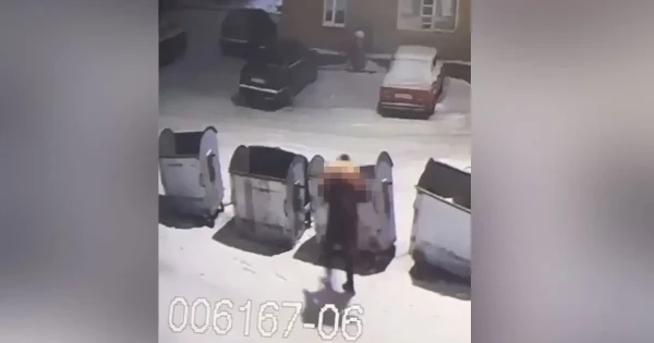 بەينەجازبادان ايەل مەن ەر ادامنىڭ قوقىس كونتەينەرىنە بارا جاتقانىن كورۋگە بولادى. ەر ادام بولشەكتەلگەن ءمايىتتى كىلەمگە وراپ, يىعىنا سالىپ, كوتەرىپ بارا جاتقانىن كورۋگە بولادى.