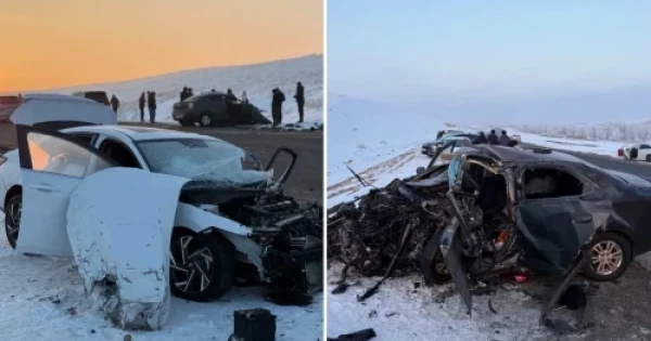 «الدىن الا مالىمەت بويىنشا Chevrolet Cobalt جۇرگىزۋشىسى قارسى جولاققا شىعىپ كەتىپ, Hyundai Elantra كولىگىمەن سوقتىعىسقان. اپات سالدارىنان Hyundai Elantra جۇرگىزۋشىسى مەن جولاۋشىسى وقيعا ورنىندا كوز جۇمدى. سونداي-اق Chevrolet Cobalt كولىگىنىڭ جولاۋشىسى ءتۇرلى دارەجەدەگى دەنە جاراقاتتارىمەن اۋرۋحاناعا جاتقىزىلدى», دەلىنگەن حابارلامادا.