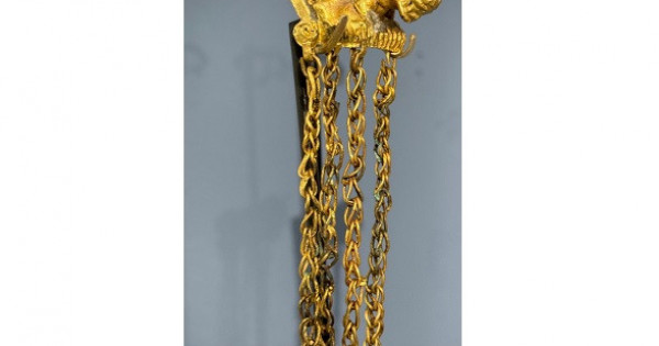 – Табылған артефактілердің ішінде мысық тұқымдас жыртқыштардың, бұланның мүсіндері, бұғылардың мифологиялық бейнелері ерекше назар аударады. Соның ішіндегі бірегейі жыртқыш мысық түріндегі көлемді алқа. Аңның көзі, ауызы, тісі, құйрығы, табаны мен денесінің жеке бөліктері рельефтенген. Аяқтары екі саңылаумен бөлінген. Табандарында шынжыр түріндегі бес кулон бекітілген өте ерекше жәдігер, – дейді мұражай қызметкері Әльфия Бақбаева.