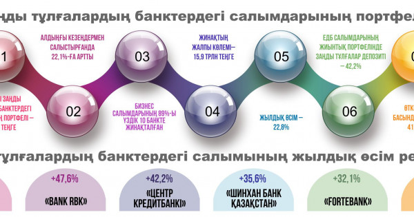 «بانك سەكتورىنا, اتاپ ايتقاندا, بيزنەس-سالىمدار سەگمەنتىندە بايقالعان وڭ ديناميكا بولاشاقتا دا ساقتالۋعا ءتيىس, سەبەبى رەتتەۋشىلەر مەن حالىقارالىق اگەنتتىكتەردىڭ تسيفرلارى دا, وڭ باعالارى دا وسىنى مەڭزەيدى. مىسالى, «S&P Global Ratings» ءوزىنىڭ BICRA رەيتينگىندە ەلدىڭ پوزيتسياسىن كوتەردى: ساراپشىلار بانك سەكتورىنىڭ تاۋەكەلدەرىن باعالاۋدى «8» توبىنان «7» توبىنا دەيىن جاقسارتتى. ەدب سالىمدارىنىڭ جيىنتىق پورتفەلىندە زاڭدى تۇلعالار دەپوزيتى 42,2%-دى قۇرايدى, وتكەن جىلدىڭ باسىندا بۇل كورسەتكىش 41,8% بولسا, بەس جىل بۇرىن 48,2%-عا تەڭ بولدى», دەپ مالىمدەيدى «Ranking» ساراپشىلارى.